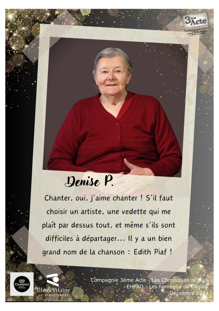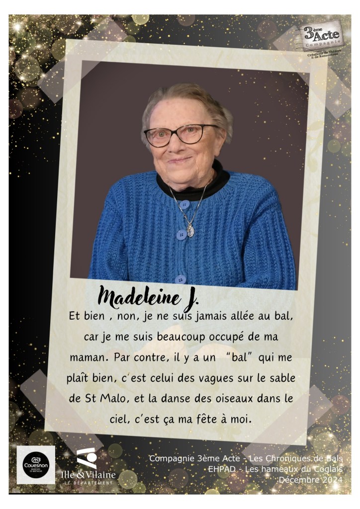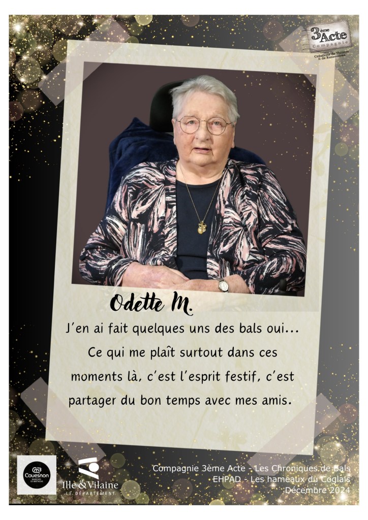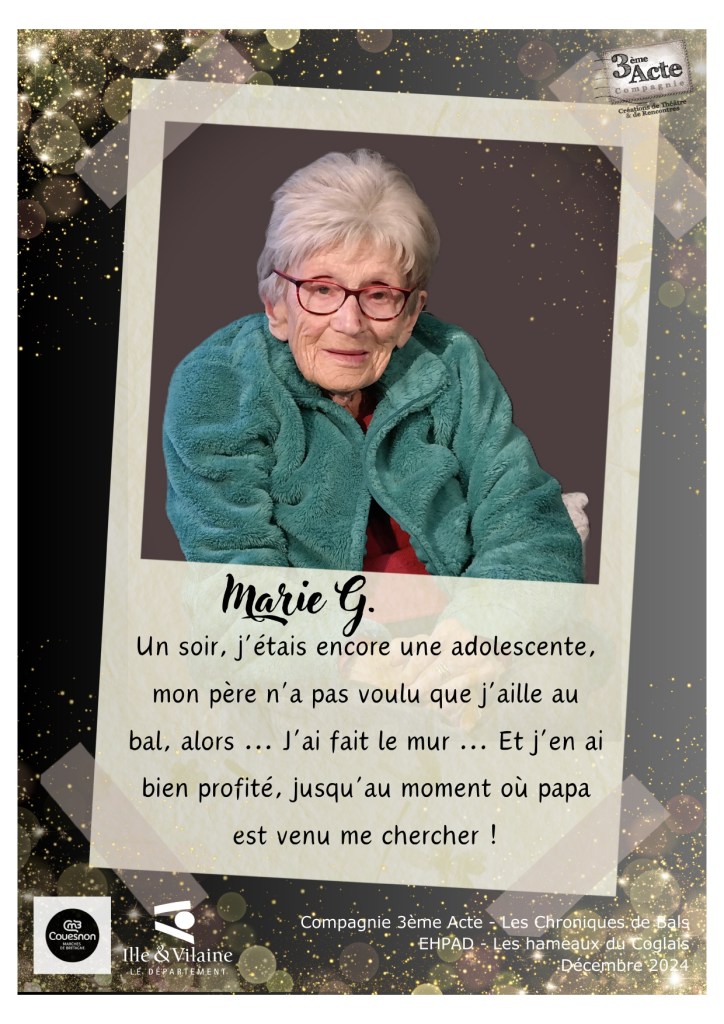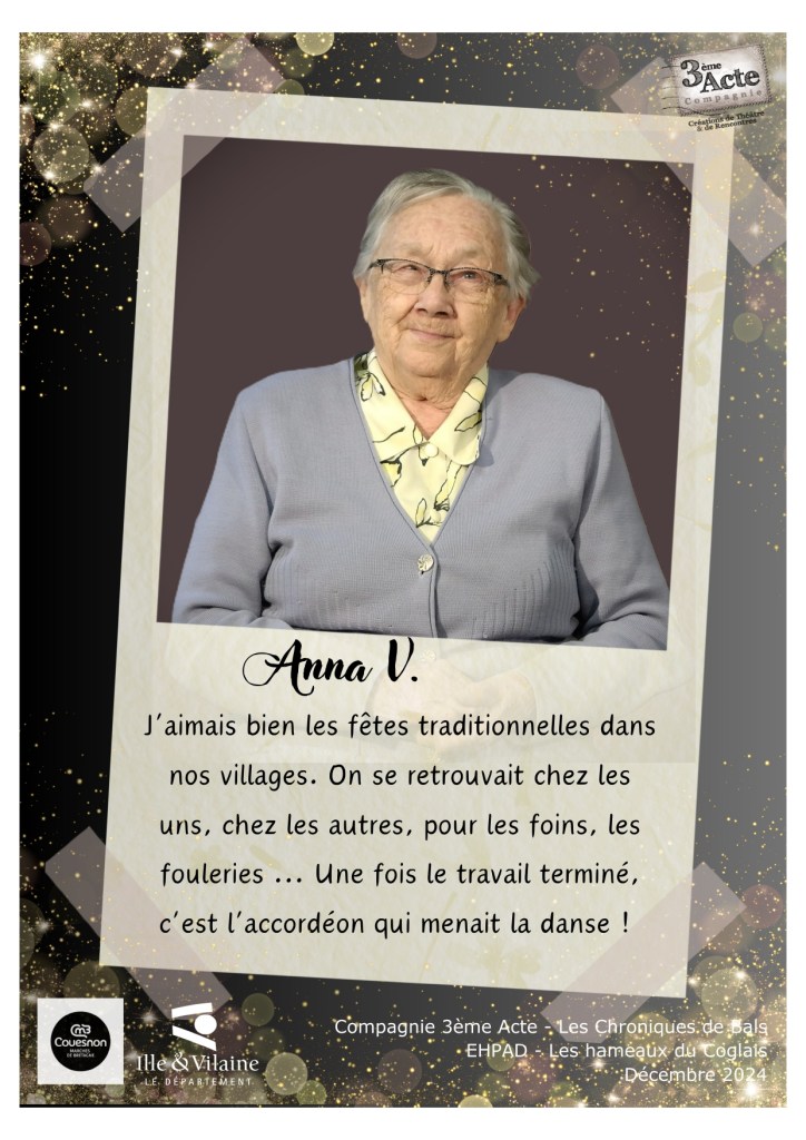 Ce reportage sonore auprès des résidents de l’EHPAD « Les Hameaux du Coglais » à Maen Roch a été réalisé par Catherine Vigneau en compagnie de Aurore Pôtel, en décembre 2024 dans le cadre de la résidence de territoire de la Cie 3ème Acte sur la communauté de commune de Couesnon Marches de Bretagne.